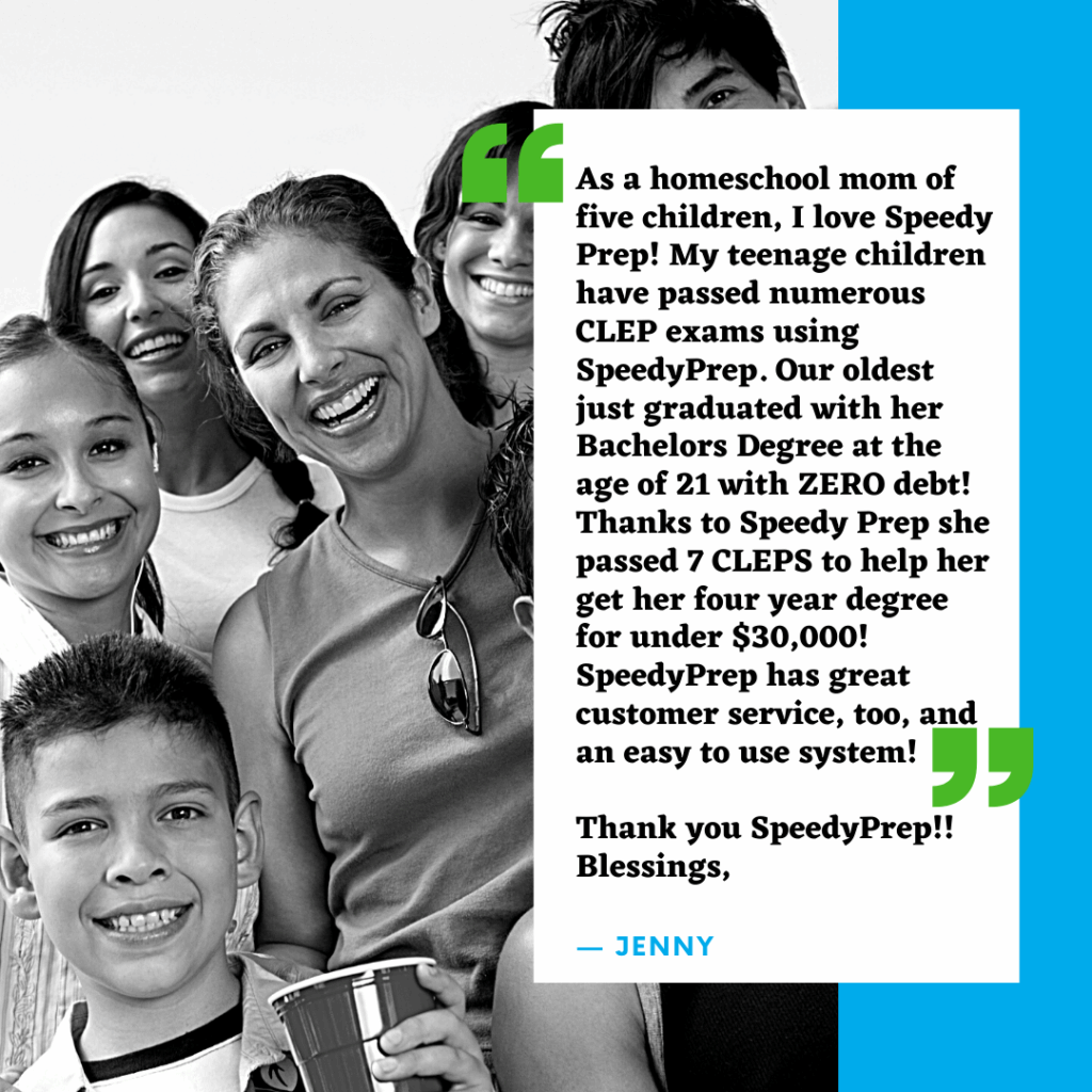 Whether you’re a servicemember trying to earn college credit, a homeschool family earning dual credits, a working adult advancing your degree on your schedule, or a college student fast-tracking graduation, earn college credits affordably with DSSTPrep (DSST) and SpeedyPrep (CLEP). Save thousands in tuition while preventing gaps and preparing for careers—without sacrificing family, work, or campus time.